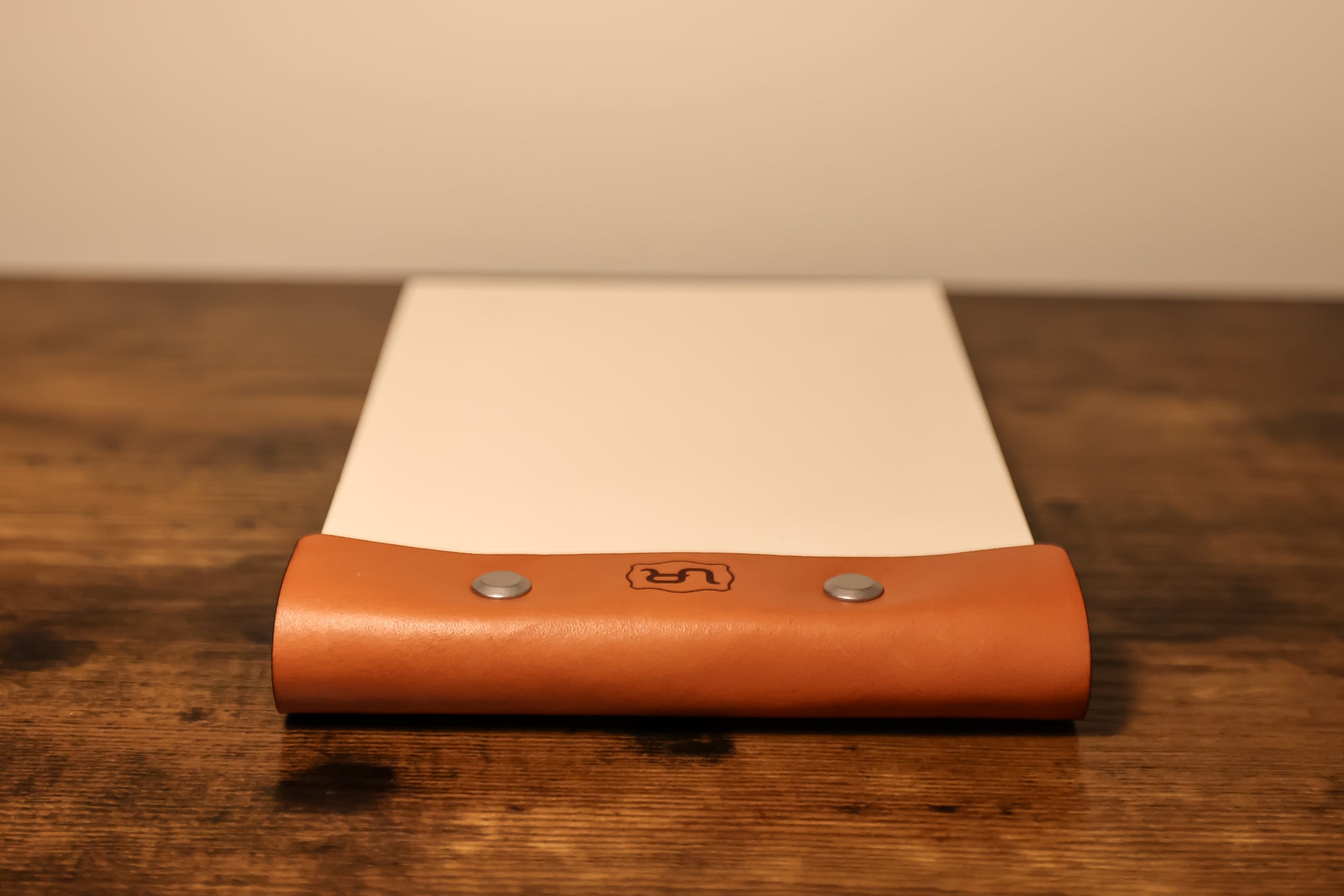 - Materials: Full-grain leather, metal rivets, refillable notepad